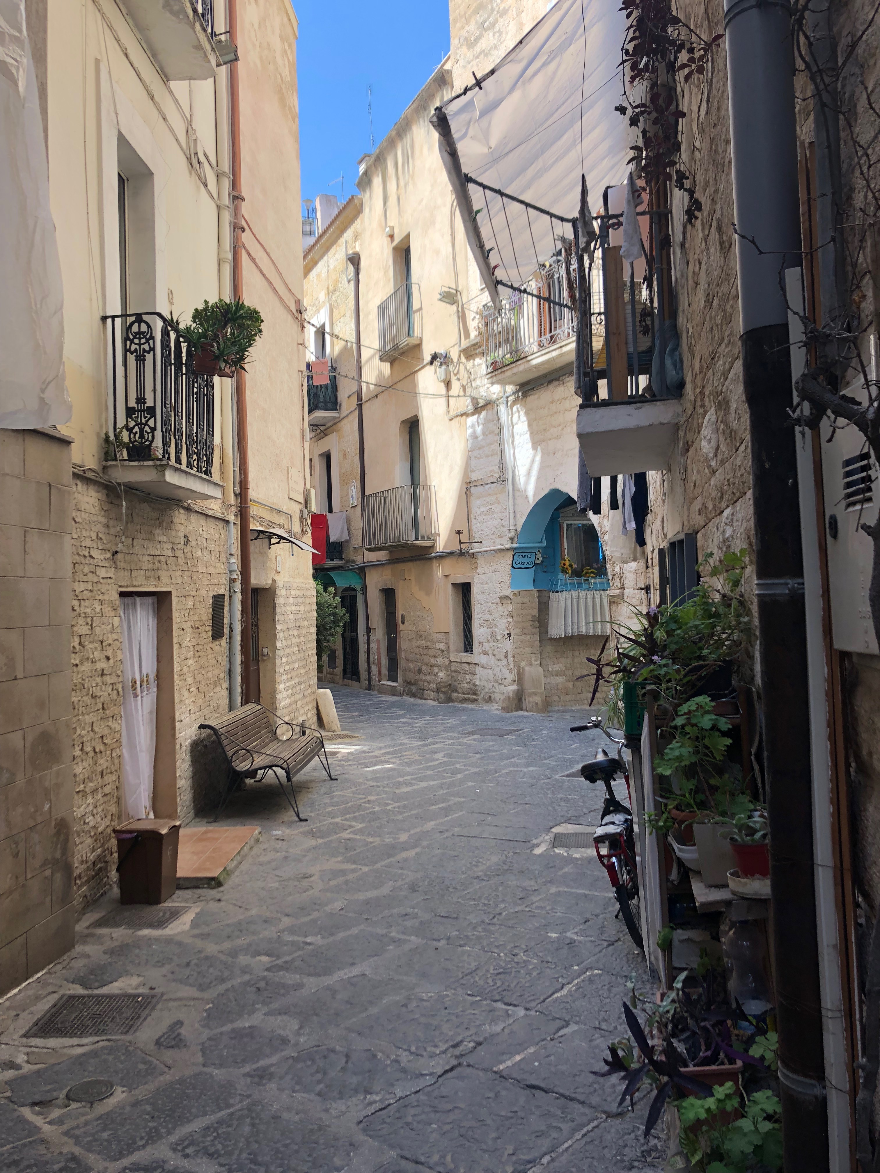 Bari Vecchia e intr-adevar cea mai frumoasa parte a orasului. Cu stradute inguste si tarabe cu fructe DELICIOASE (aici am descoperit Nespola, un fruct minunat de care m-am indragostit de la prima muscatura- e un must try, crede-ma), balcoane cu haine intinse la uscat, miros de balsam de rufe si vibe de oras italienesc, pe scurt: o minunatie de oras vechi.