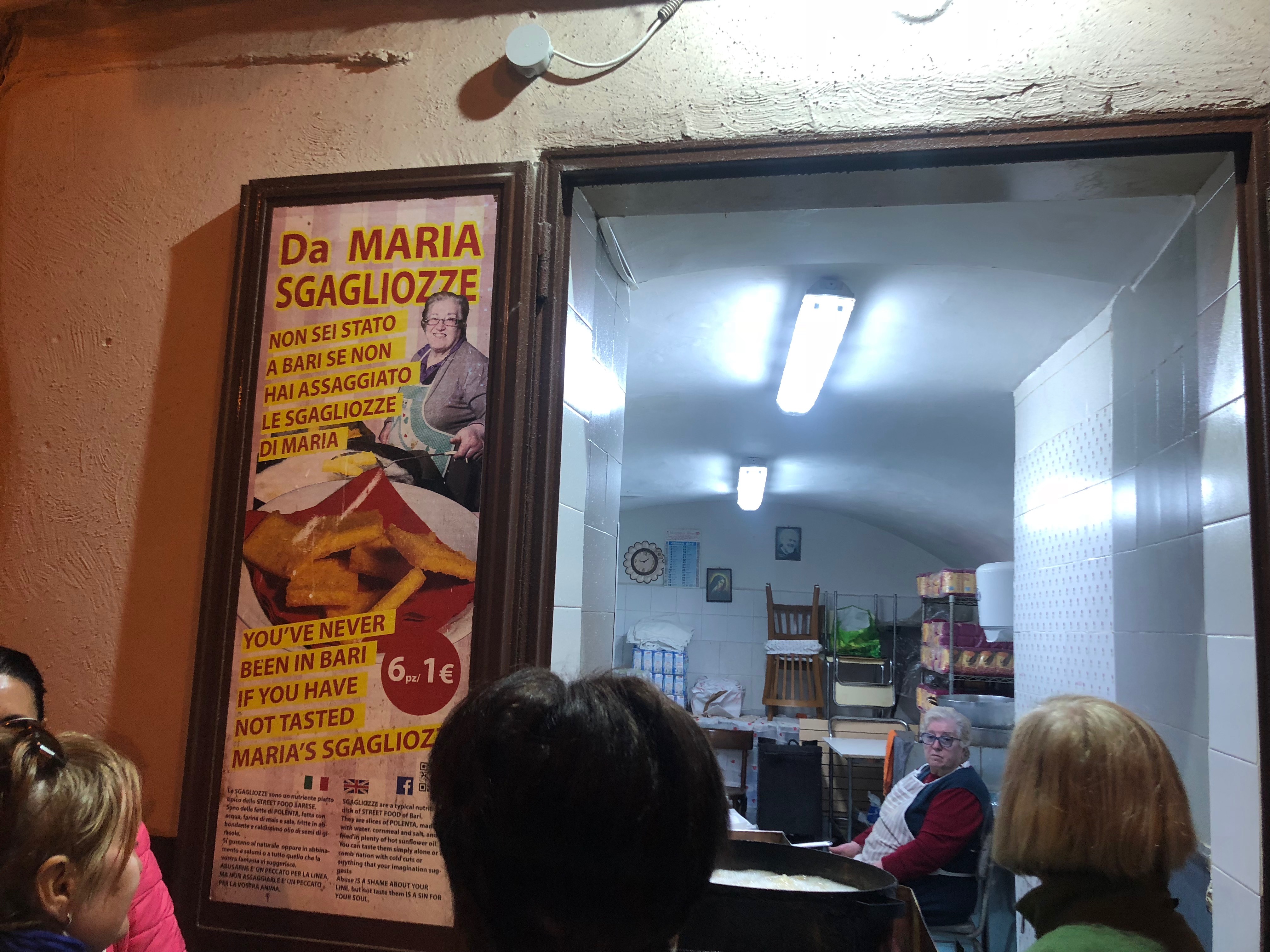 In Bari Vecchia gasesti celebrele sgagliozze, iar Maria delle Sgagliozze este locul de unde trebuie sa le incerci deoarece sunt cele mai renumite iar lumea sta la coada pentru ele. Eu am citit despre ele cu ceva timp inainte sa merg in Bari intr-un articol despre “top street food traditionale”. Primesti 6 buc pentru 1€, deci macar de curiozitate. Pe mine sincer nu m-au impresionat deloc, dar asa ca si o mica experienta culinara, why not.